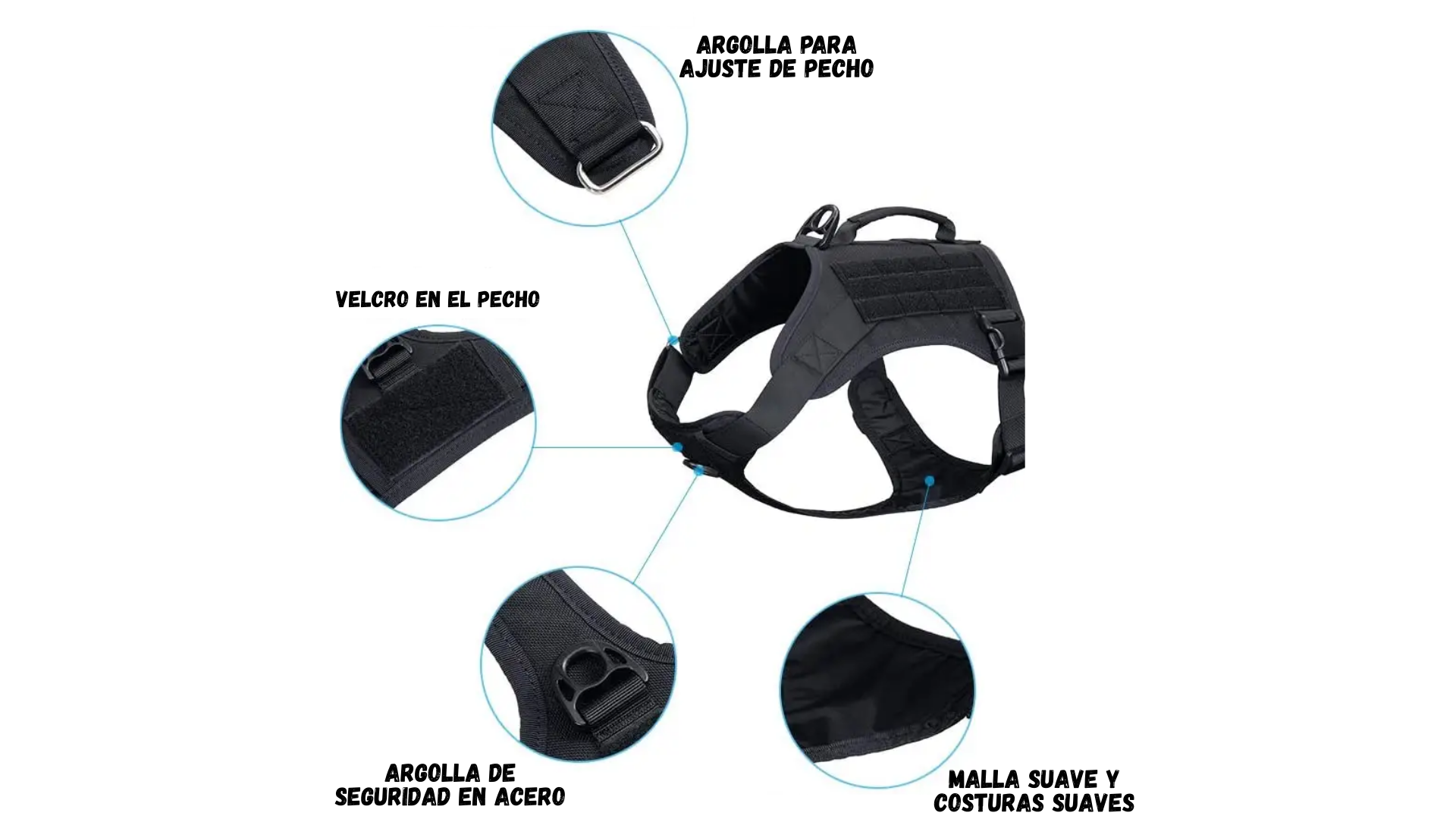 Resistente y duradero: Fabricado con material Oxford de alta calidad, este arnés está diseñado para resistir las condiciones más exigentes, brindándote seguridad y confianza en cada uso.