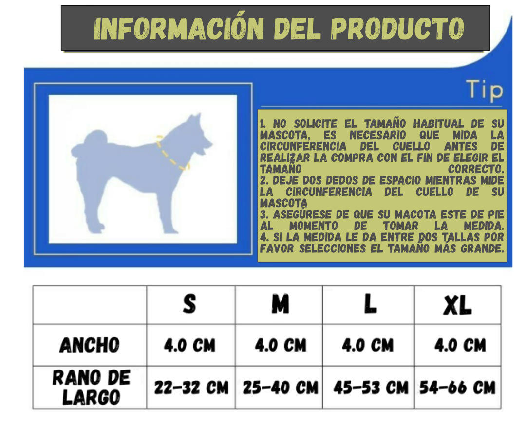 S: Collar largo para mascotas: 22-32 CM , Ancho :3.8CM.