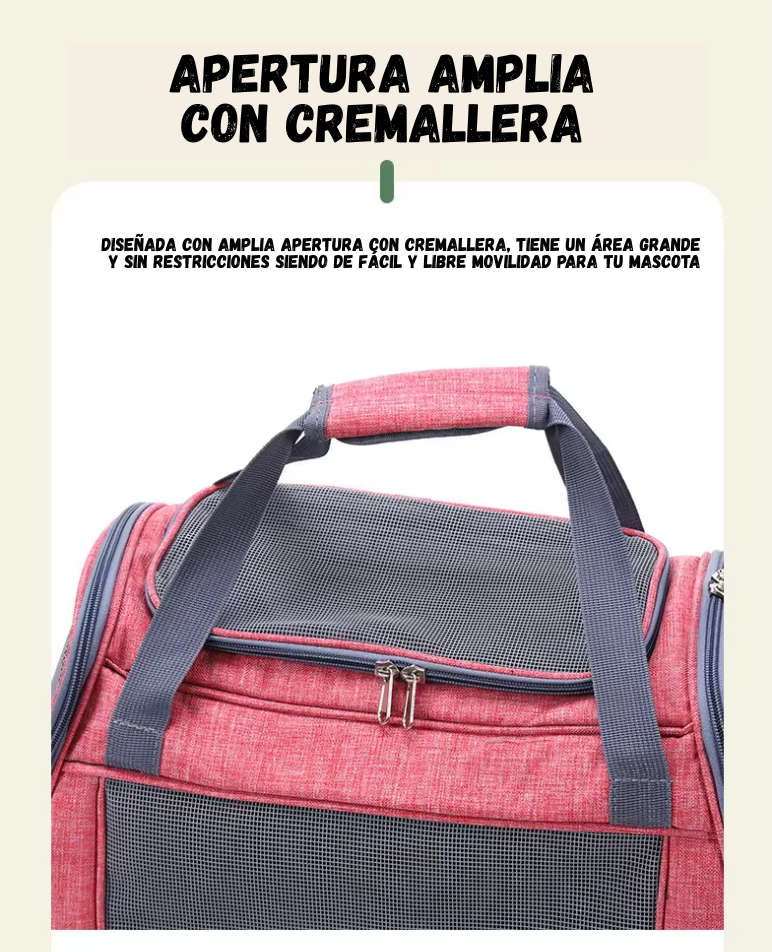 Maleta de viaje para gatos o perros, con amplio espacio y muy cómoda para que tu peludo amigo pueda moverse y contar con mayor circulación de aire, posee ventilación superior y a los lados para mantener a tu peludo libre de la sensación de encierro o asfixia.